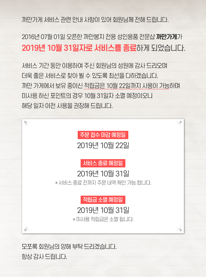 까만가게 서비스 종료 안내 |