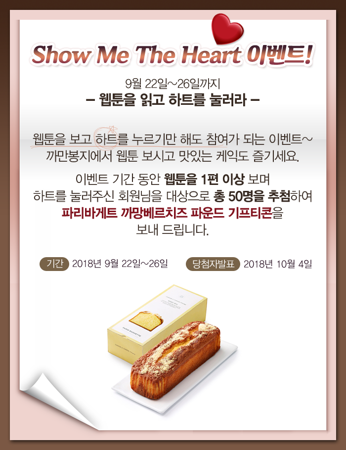 안녕하세요 까만봉지 입니다. 지난 9월 22일~26일까지 진행 되었던 Show Me The Heart 이벤트가 종료 되었습니다. 이벤트 당첨자를 안내해 드리겠습니다. ■ 당첨자 분들께서는 10월 04일까지 이벤트 당첨자 페이지에서 상품을 수령하실 정보를 입력해주세요.